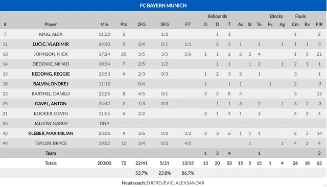 2. DESACIERTO INICIAL. Los nervios pesaban en el inicio del partido, donde las imprecisiones se imponían a los ataques con sentido. El resultado del primer cuarto era una buena muestra de ello (13-12). Pero los de Joan Plaza lograban mejorar en ataque y Kyle Fogg, con ocho puntos consecutivos, daba la máxima ventaja a los malagueños (24-33). Dos triples de Nick Johnson (el mejor de los bávaros) permitían a los de Djordjevic irse al descanso con 35-37 en el marcador.