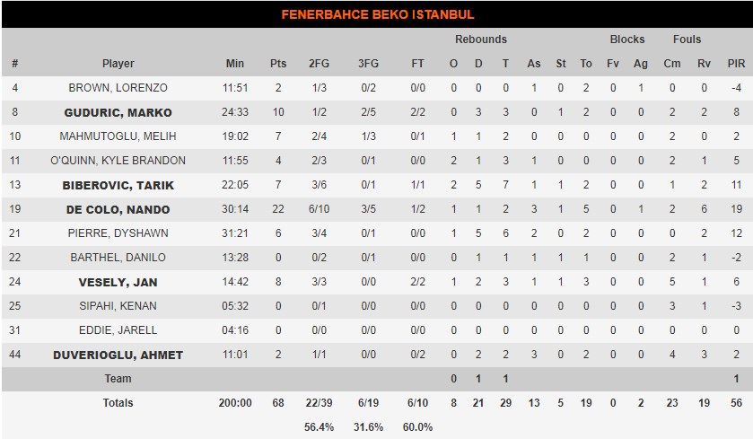 FENERBAHCE BEKO ISTANBUL 68-85 CSKA MOSCOW