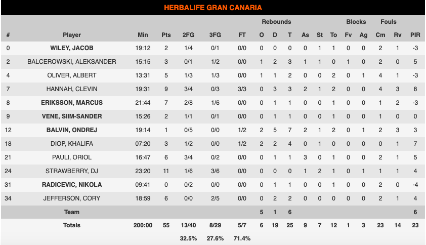 Más diferencia: En el choque hubo demasiadas batallas ganadas con claridad por Maccabi. La diferencia en el rebote (50 a 25), en los porcentajes de tiro (60% en tiros de dos de Maccabi y 30% en tiros de campo el Granca) o en las asistencias (18 a 9), fue abismal. Todos esos números son reflejo de la concentración con la que afrontaron los jugadores que entrena Sfairopoulos el partido y que fue determinante para salir vencedor. El Granca terminó el partido con 23 créditos de valoración, mientras su rival logró 122.