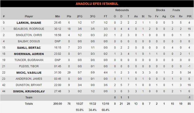 A pesar de entrar en pista jugadores con menos capacidad defensiva como Thompkins, Vukcevic o Laprovittola, el plan del Real Madrid seguía funcionando en el segundo cuarto y el Efes no conseguía ese ritmo arrollador en ataque que es capaz de desarrollar. Pero cuando lo colectivo no acaba de arrancar, las estrellas son capaces de usar su talento para resolver en solitario y no hay equipo en Europa que tenga mejores individualidades exteriores que Anadolu. Vasilije Micic y Rodrigue Beaubois se combinaron para sumar 24 de los 38 puntos de su equipo y terminar la primera parte con 10 de ventaja para los turcos. La defensa blanca consiguió que cinco jugadores rivales no anotarna en esta primera parte, Shane Larkin incluido, pero no fue capaz de parar al dúo formado por el serbio y el francés que los acribillaron con un 5 de 6 conjunto en triples. Y luego en la segunda parte llegó la exhibición de Vasilije Micic, que fue el único problema irresoluble para la defensa del Real Madrid en todo el partido.