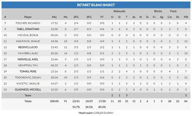 Los problemas defensivos bilbaínos: No se ha encontrado cómodo hoy el equipo de Carles Duran en tareas defensivas, las ayudas no llegaban tras las situaciones de bloqueo directo y la zona era un auténtico agujero negro. Los Hombres de Negro han tratado de remontar una y otra vez, pero siempre a base de arreones ofensivos. Han concedido ventajas con facilidad, y pese a los continuos esfuerzos por recortar distancias, el mal inicio de partido ha salido caro.