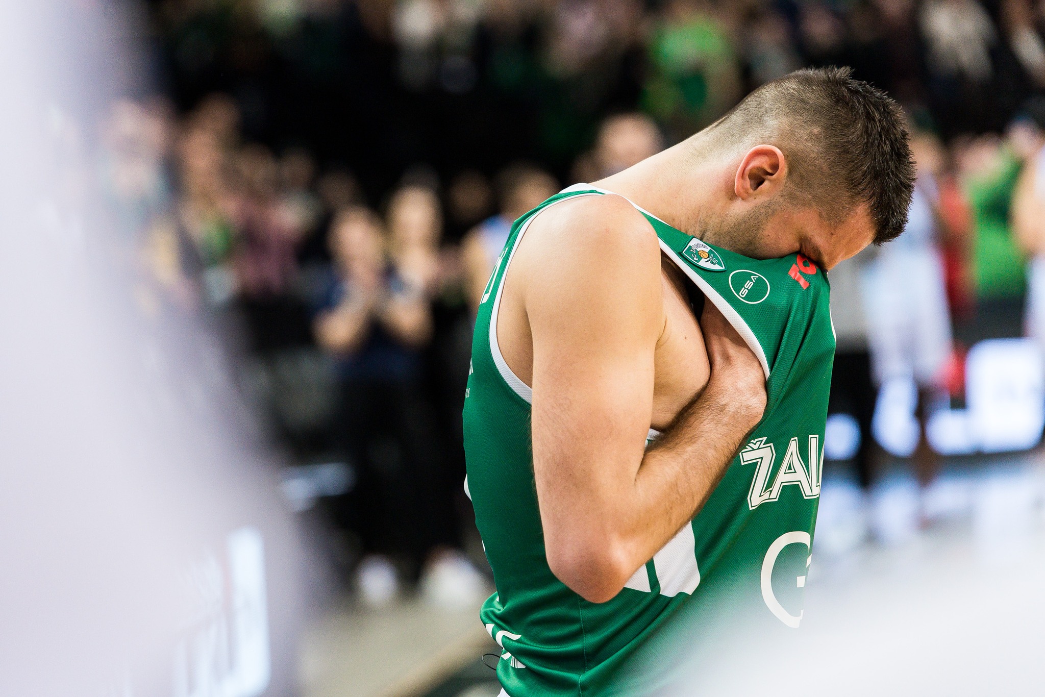 Mantas Kalnietis emocionado en su despedida en el Zalgirio Arena. Foto: Zalgiris Kaunas