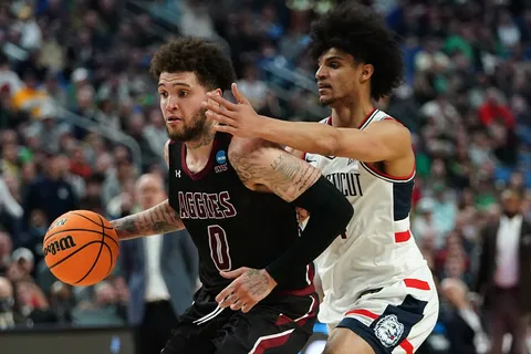 El cuarto seed, Arkansas Razorbacks, se impuso a otra de las grandes sorpresas de primera ronda, New Mexico State, y con una gran primera parte en la que lograron una ventaja de 9 puntos, fueron capaces de mantenerla en la segunda mitad a pesar del acercamiento de los de Chris Jans, que sufrieron el mal partido de Teddy Allen, y cayeron por 53-48.