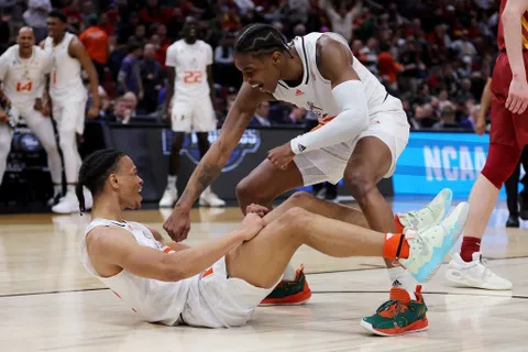 La final de la región midwest la disputaron Miami Hurricanes y Kansas Jayhawks, tuvo dos partidos completamente diferenciadas. En la primera, la igualdad fue la nota predominante con ninguno de los dos equipos siendo capaz de conseguir ventajas superiores a los 4 puntos, hasta el final en el que, impulsados por un gran Kameron McGusty (18p, 4r) los Canes lograban irse a vestuarios con 6 puntos a su favor, 35-29.