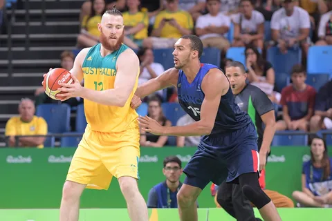 Aaron Baynes anotaba la primera canasta de los JJOO de Rio de Janeiro, con un poderoso mate tras asistencia de Joe Ingles. Australia lograba las primeras ventajas dominando gracias a su dupla interior, Bogut-Baynes, que anotaban los primero seis puntos de su combinado nacional. No tardarían en unirse los exteriores, permitiendo que Australia se marchara con siete puntos de ventaja (14-7) que obligaba a Francia a solicitar tiempo muerto.