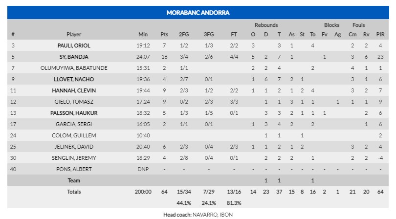 Hay días en los que un equipo más acertado que otros, y viceversa. En el día de hoy, Morabanc Andorra no tuvo uno de sus mejores días, y así se vio reflejado en la cancha. Durante la primera parte, su efectividad en el tiro fue muy baja. En la segunda mitad del mismo, el club andorrano si que logró mejorar los números cosechados en los primeros 20 minutos, pero se encontró con un problema: no había quien acompañase a Bandja Sy. El ala-pívot francés acabó el encuentro con 17 puntos, y fue la principal vía anotadora de un Morabanc Andorra pobre en acierto. Tomasz Gielo y Clevin Hannah se apuntaron el tanto de escuderos de Bandja Sy con 9 puntos cada uno, pero resultó insuficiente para vencer a un AS Mónaco más efectivo.