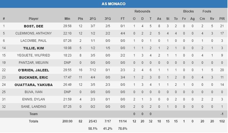 AS Monaco demostró estar mucho más rodado. Los del otro principado llegaban ya con tres partidos en la liga frances (todos ganados) y se mostraron como un equipo mucho más hecho y compacto que los andorranos. Hasta 9 jugadores anotaron ya en la primera parte y 5 los que superaron la decena al final del partido.