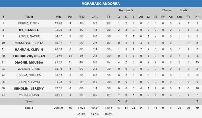 Solo se puede sacar como lectura positiva momentos puntuales y el no rendirse. MoraBanc Andorra peleó siempre por que Monaco no cerrara el duelo antes de tiempo, pero ni su ataque ni su defensa fueron buenos. La anotación de Todorovic en la primera parte, algunos escasos momentos buenos de la pareja Senglin-Hannah y la aportación de Diagne, que en un partido flojo volvió a ser el más valorado con 15.