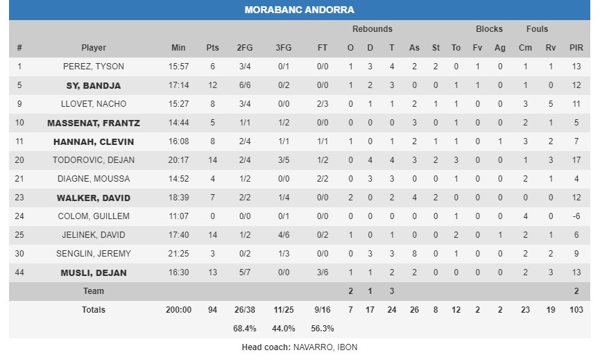 1- INTENSIDAD DEFENSIVA. Quizá la intrascendencia del partido tuvo que ver en la actitud defensiva de MoraBanc Andorra, pero lo cierto es que en ningún momento fue la necesaria para poder ganar un partido continental. 58 puntos recibidos al descanso y un 12/21 en triples recibidos gracias a las facilidades concedidas fueron indicativo de ello.
