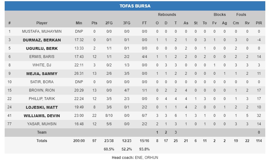 Partido correspondiente a la última jornada del Top-16 en Eurocup el disputado entre Tofas Bursa y MoraBanc Andorra. Partido instrascendente para ambos equipos con un Tofas Bursa clasificado en 2º posición y un MoraBanc Andorra ya eliminado.