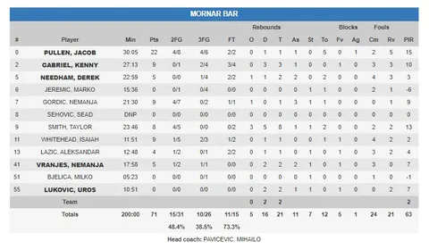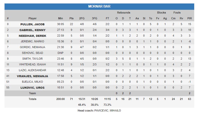 El KK Mornar Bar fue una de las grandes sorpresas de la fase de grupos de la Eurocup. El equipo montenegrino cuenta en su plantilla con grandes jugadores, como el ex-culé Jacob Pullen, Isaiah Whitehead o Kenny Gabriel. La primera mitad del equipo dirigido por Mihailo Pavicevic fue muy seria, siendo determinantes y divertidos en ataque, y efectivos en defensa. En ataque, Derek Needham ponía la dirección, e Isiah Whitehead culminaba desde el perímetro, enchufando dos triples consecutivos que castigaban al Morabanc Andorra. En el otro aro, Taylor Smith marcaba las pautas, siendo el eje sobre el que giran las acciones defensivas