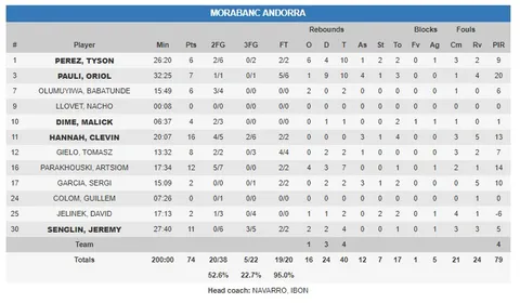 Morabanc Andorra tiene uno de los juegos interiores más físicos de la competición, a pesar de contar con las bajas de Moussa Diagne y Bandja Sy. En la tarde de hoy, el equipo dirigido por Ibón Navarro estuvo de lo más acertado a la hora de hablar del rebote, y es que, literalmente pasó por encima del equipo montenegrino (21 de los locales por 40 del Morabanc Andorra). La gran diferencia no llegó solo en el aspecto global, sino que hay que incidir en los rebotes ofensivos, dónde el conjunto del Principado hizo mucho daño. De las 40 capturas totales, 16 de ellas fueron en ataque, lo que resultó clave para Andorra tuviera más segundas oportunidades de cara a lograr la victoria.