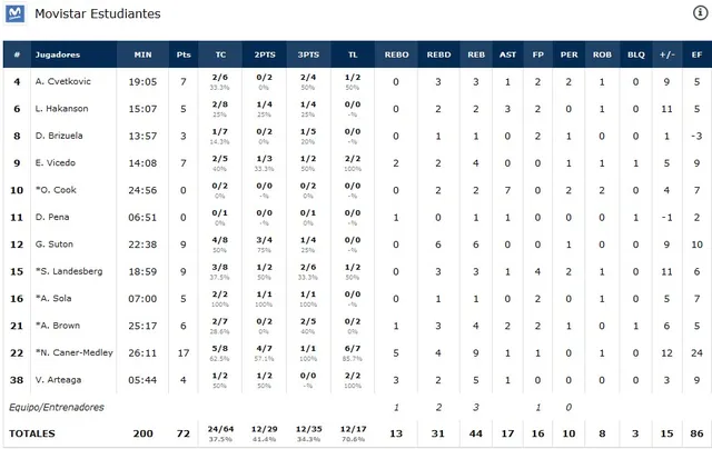 El partido se pondría de cara ya desde el arranque con un 2-10 de salida y con Landesberg entonado desde el 6.75. El acierto exterior estudiantil servía para que el primer periodo finalizase con un 17-26 favorable a Estudiantes. El acierto exterior bajaría en el segundo periodo pero el buen trabajo en defensa y el buen hacer de Nik Caner-Medley servían para que al descanso la renta siguiera favorable al conjunto madrileño por 31-39.