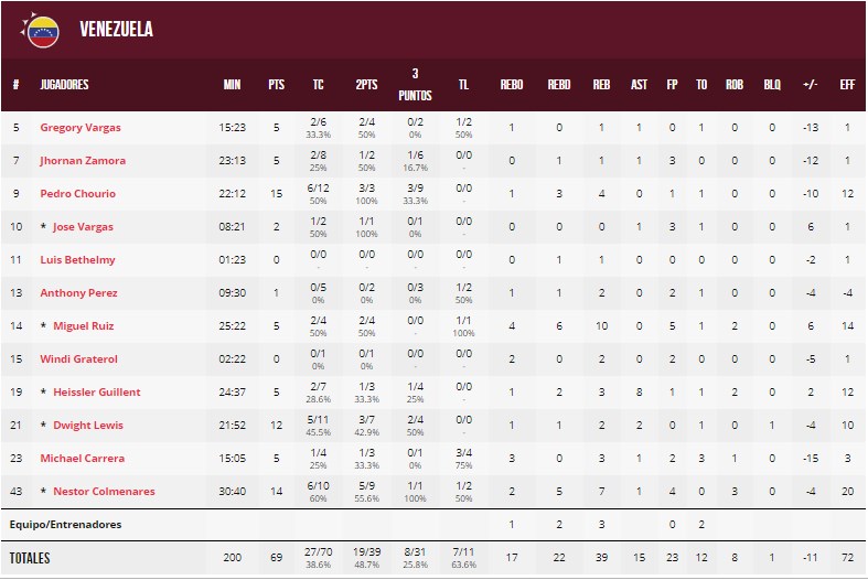 | VENEZUELA | NESTOR COLMENARES | 14 | 7 | 3 robos | 20 | ||