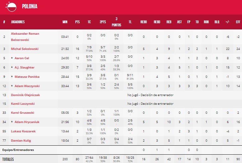 Los europeos llevaron el control del partido a partir de ahí para conseguir una victoria relativamente cómoda contando con un muy buen sexteto: Michael Sokolowski fue sorprentemente el mejor con su gran trabajo de apoyo en el rebote (9) además de ser el mejor anotador con 16 y el más valorado con 24; los pívots Aaron Cel y Adam Hrycaniuk hicieron su trabajo y y AJ Slaughter, Ponitka y Waczynski pusieron la caldidad exterior.
