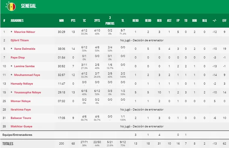 Senegal plantó cara a los australianos, que no consiguieron despegarse en la primera mitad (36-33). Los africanos exhibieron un juego muy físico y con una defensa aguerrida, lo que unido a las buenas actuaciones de Dalmeida, Ndoye, Ndour y Faye, les permitió estar en el partido.