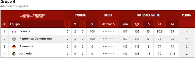 En la segunda jornada de los grupos G y H ya ha quedado decidida la clasificación. Los favoritos como Francia, Australia y Lituania han cumplido, mientras que una guerrera República Dominicana se ha impuesto a la Alemania de Schroder, Kleber, Theis y Voigtmann entre otros, dejándola fuera de la segunda fase. Esta clasificación de los americanos tiene un gran mérito, al acudir al Mundial sin las estrellas que podrían haber traído como Al Horford y Karl Anthony Towns, y un fracaso de una selección alemana con mucho talento pero que solo lo ha mostrado con cuentagotas.