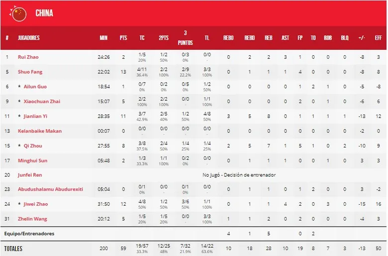 La derrota de China en la prórroga contra Polonia los sentenció a un duelo a vida o muerte contra la aguerrida selección venezolana. Desde el primer momento Venezuela llevó la iniciativa ante unos chinos agarrotados por la presión de jugar como locales con un juego coral liderado por Guillent, Vargas, Colmenares y Lewis. Por parte de China no aparecía las supuestas estrellas, ya que Jianlian Yi no tenía su día, Qi Zhou en ningún momento ha sido el jugador que se esperaba en este Mundial y Ailun Guo se apagó después de un primer buen partido.