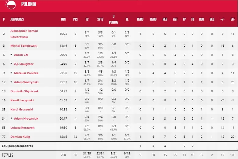 Los polacos remontaron en un gran segundo cuarto y en el último finiquitaron el duelo. El joven Balcerowski tuvo una buena aportación con 8 puntos, 6 rebotes y 11 de valoración mientras los habituales Waczinski y Ponitka lideraban, bien acompañados por Kulig. La selección entrenada por Mike Taylor llega a la segunda fase con una victoria de ventaja sobre Rusia y Venezuela y se encuentra ante una gran oportunidad de llegar a cuartos.