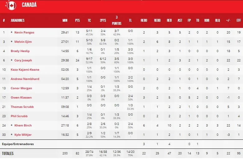 Cory Joseph y Kevin Pangos volvieron a liderar a los suyos y contaron con la intendencia de Birch y Ejim. Por parte de Senegal, Faye fue el faro en ataque y Ndour puso la lucha bajo aros con 12 rebotes.