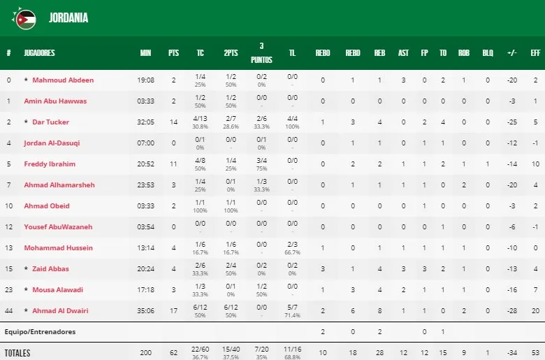 | JORDANIA | AHMADA AL DWAIRI | 17 | 8 | 1 asistencia | 20 | ||