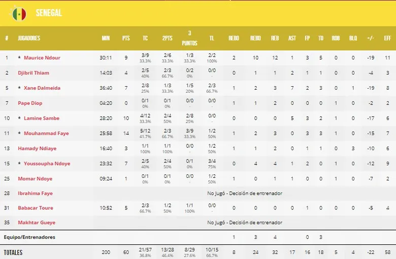CANADÁ 82-60 SENEGAL