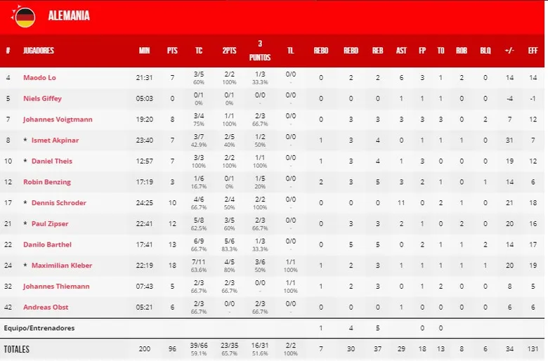 El partido entre alemanes y jordanos tuvo similitudes con el de Canadá vs Senegal. Los asiáticos sufrieron las ganas de Alemania de conseguir su primera victoria, pero Jordania aún tiene opciones de conseguir la clasificación directa para las Olimpiadas, mientras que a Alemania le toca luchar por el preolímpico.