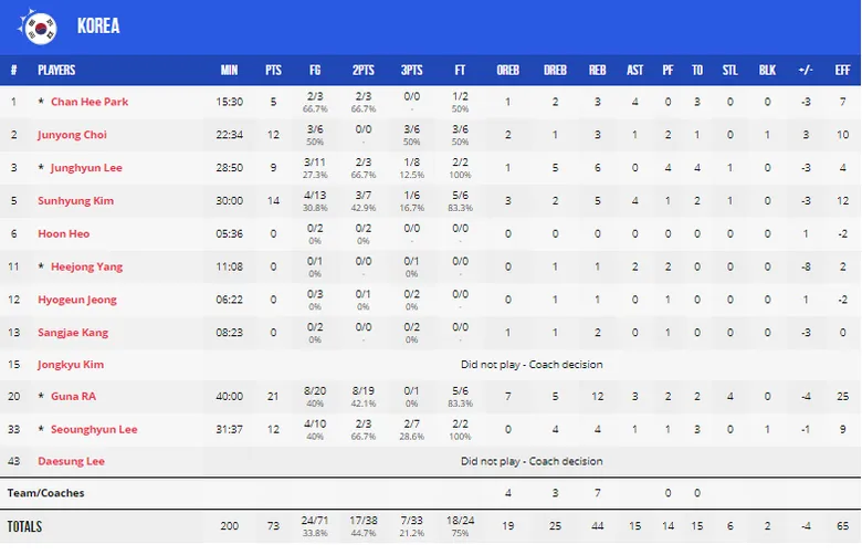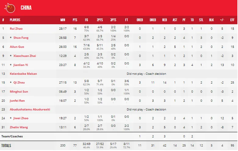 Zhou Qi y Guna Ra se adjudicarían unos dobles-dobles de 13 puntos, 14 rebotes y 21 puntos y 12 rebotes respectivamente.