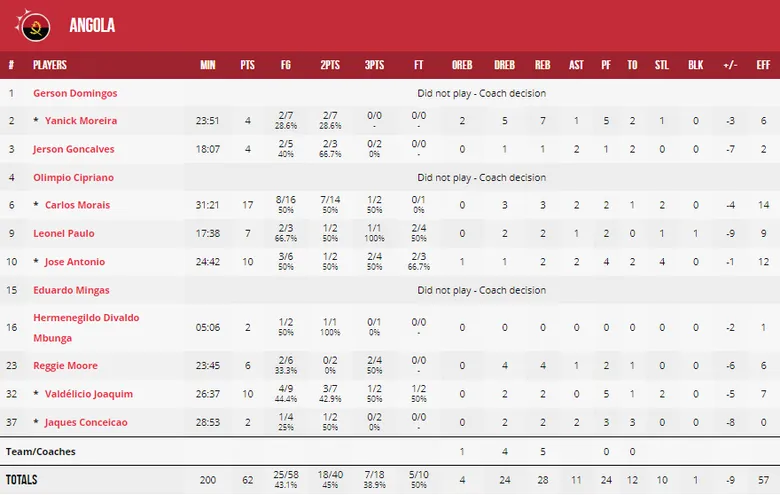Después de complicarle a la selección española su último partido del grupo C, la selección iraní volvía a competir en un duelo ante una Angola que opuso mucha resistencia, aguantando en el marcador gran parte de los 40 minutos de juego. Finalmente, un parcial de 9-0 a mitad del último cuarto terminó por decantar la balanza a favor de Irán, en la que Khahbahrami sería el máximo anotador con 21 puntos. Por parte de lo africanos, Carlos Morais se quedaría en 17 puntos.