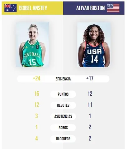 Alexandra Fowler (Australia) (9 puntos y 10 rebotes): Una de las grandes culpables de la actuación aussie, ha sido la principal baluarte en el rebote de las oceánicas. Junto a ello, ha sido capaz de anotar con soltura tal y como demostró en sus partidos frente a Hungría (19 puntos y 17 rebotes) o Corea (15 puntos y 10 rebotes).
