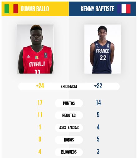 En la primera de las semifinales disputadas, Mali siguió dando la sorpresa y se convirtió en la primera selección africana de la historia que disputará un partido por el título. Con su victoria frente a Francia, con el resultado de 76-73, en un partido en el que el país africano fue dominando desde el segundo cuarto de la mano, con gran partido de Oumar Ballo (17 puntos, 11 rebotes y 4 tapones). Los de Drame, Fousseyni (17 puntos y 11 rebotes) y Hassan (13 puntos y 8 rebotes), que fueron unos grandes lugartenientes para el pívot africano, que el año que viene jugará en Gonzaga, dónde tendrá que enfrentarse a muchos de sus rivales en la final.