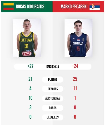 | LITUANIA | ROKAS JOKUBAITIS | 92-85 | 21 | 4 | 10 asistencias | +27 | ||