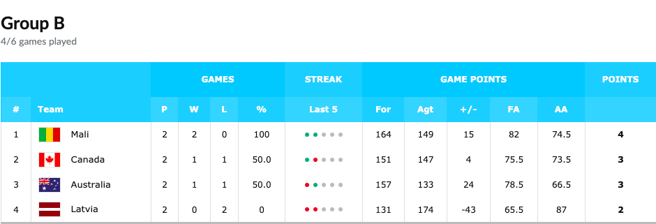 CANADÁ 70-71 MALÍ LETONIA 52-81 AUSTRALIA |