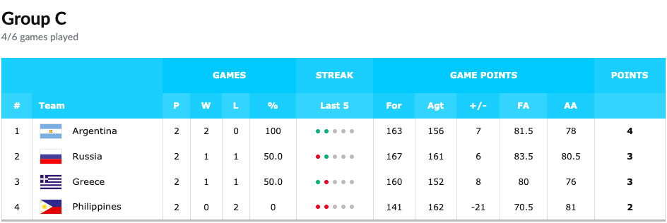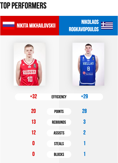 En el otro partido del grupo, Nikita Mikhailovskii, dejó el primer triple-doble de la competición con 20 puntos, 13 rebotes y 12 asistencias en la victoria frente a Grecia. Tras haber perder frente a Argentina el primer día, posiblemente, los rusos tendrán que conformarse con la segunda posición del grupo.