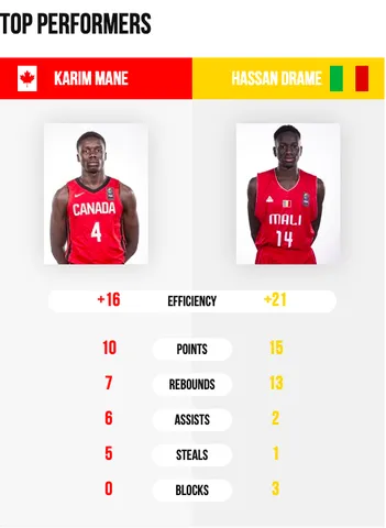 La gran sorprensa de la competición. Antes del retorno de Oumar Ballo, el equipo ha dado un paso al frente y han sabido superar a Canadá (el gran favorito junto con EEUU). Hassan Drame ha sido el MVP del encuentro con 15 puntos y 13 rebotes. La estrella candiense, AJ Lawson, sigue muy errático en sus tiros y el 4/14 en tiros de campo durante el día de hoy sentenció a su equipo.