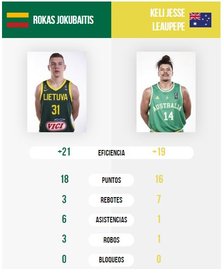 El tercer partido presentaba el que debía ser el choque más igualado de todos, debido al nivel parejo entre Lituania y Australia y como tal, se dio en el partido, ya que las diferencias fueron en todo momento inferiores a los 10 puntos pero la calidad individual de los lituanos, encabezados por Erikas Venskus (20 puntos y 7 rebotes) y Rokas Jakubaitis (18 puntos y 6 asistencias), lograba dar el último parcial a los bálticos por 10 puntos y la victoria con un margen más alto de lo que se percibía en el resto del choque, de manera que el electrónico reflejaba al final 91-74.