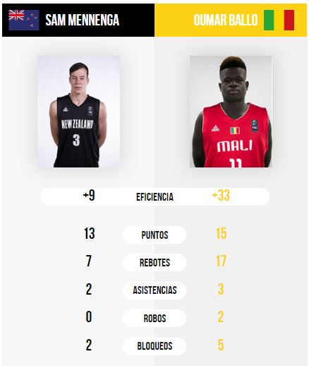 En esta parte del cuadro, en el primer partido Mali refrendaba las buenas sensaciones dejadas ante Canadá y que dieron al conjunto africano la victoria sobre los de la hoja de Arce, siendo capaces desde el comienzo de imponer el ritmo que más les interesaba y con el recruit de Gonzaga Oumar Ballo volviendo a hacer un gran partido, siendo el dueño y señor de ambas zonas (15 puntos, 17 rebotes y 5 tapones) a pesar de ser dos años menor de edad que la mayoría de sus adversarios, los africanos lograban superar a una difícil Nueva Zelanda por 62-77 y clasificar para cuartos de final.