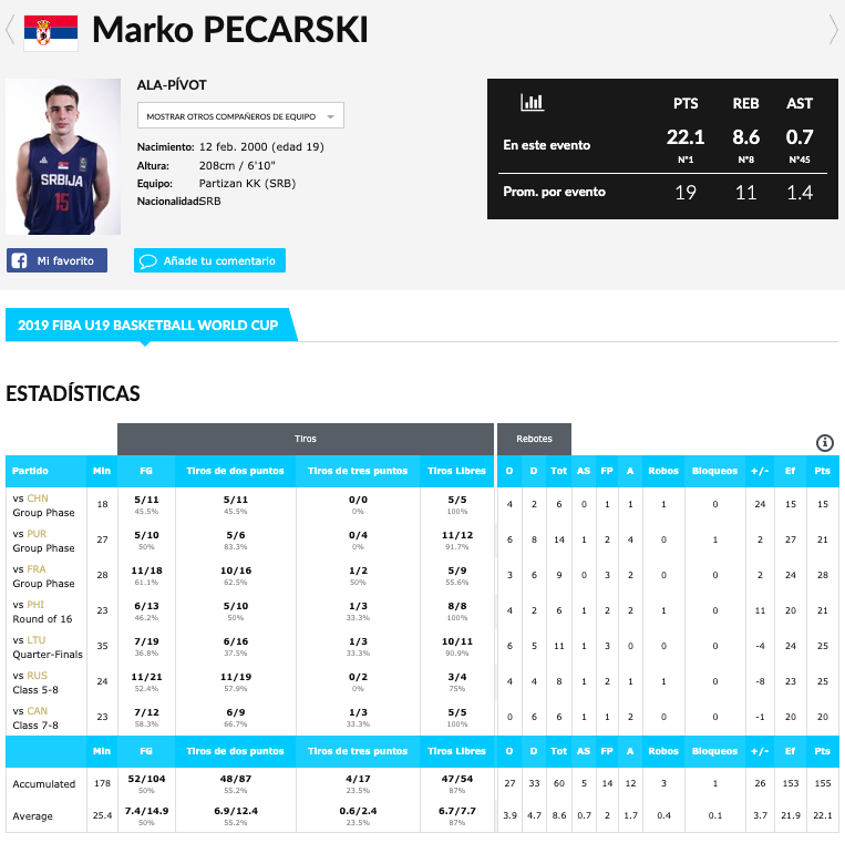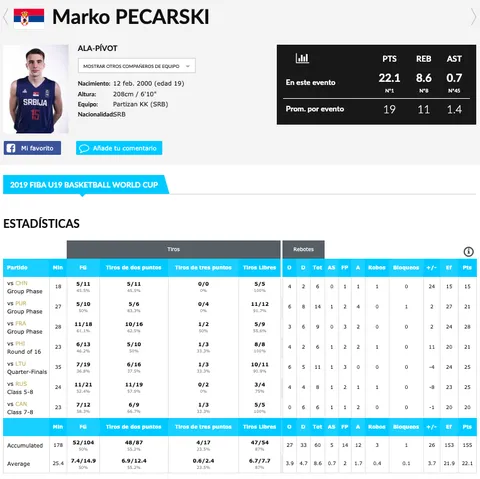 A pesar de la eliminatoria en cuartos de final frente a Lituania, Pecarski, ha sido uno de los jugadores más determinantes en toda la competición. En sus estadísticas, podemos ver que el jugador serbio fue mantuvo sus promedios de anotación: