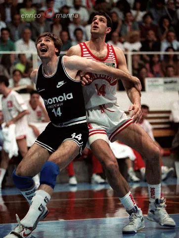 Una derrota en cuartos de la Lega contra el mismo equipo que les vencería en la final de Coppa, Knorr Bologna, no oscurece en modo alguno el colofón a la temporada 1988/89. En el Pabellón de Las Dos Mentiras, como así llama mi amiga Isabel a La Paz y la Amistad de Atenas, iba a disputarse el partido que subiría a Drazen Petrovic a los altares. El partido que Hervè Dubuisson soñó con disputar. El partido del que los puristas de la pizarra quisieran negar su existencia. El partido de los partidos. Los 62 puntos de Petrovic ahí están. Los 44 de Oscar, también. Los 35 de Gentile con esos triples que tiraba nada más cruzar campo está este texto para recordarlos. Sus números finales en Lega calcados a los de la temporada anterior.