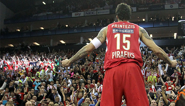Giorgos Printezis (29 años) solo parece encontrarse cómodo bajo la camiseta de su equipo de toda la vida, el Olympiacos. Suma 10 temporadas con solo 29 años y lo hace de forma interrumpida. Debutó con el equipo del Pireo la temporada 2002/03, con 17 años, para irse cedido al Larissa 4 años más tarde. Allí, además de ganar el concurso de mates, explotó siendo elegido mejor jugador joven de la liga griego y consiguiendo el pasaporte de vuelta a su preciado club.