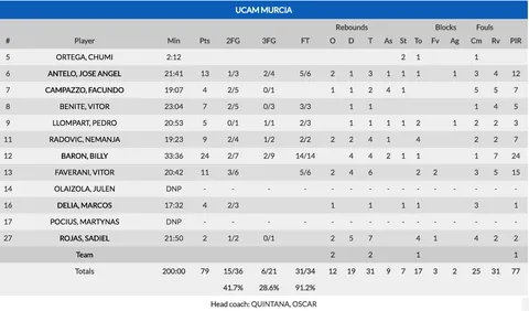 Déficit de aleros: A las lesiones de Pocius y Soko, se unió la de Rojas, que hizo debutar a Chumi Ortega. Mientras los murcianos tiraron del acierto de Faverani y Llompart para seguir liderando en el electrónico. Barthel fue el baluarte alemán para no salir del partido. Los pimentoneros aguantaron por delante, pero Kleber anotó sobre la bocina para apretar el resultado (47-43) y como preludio de la gran segunda parte que iba a realizar.