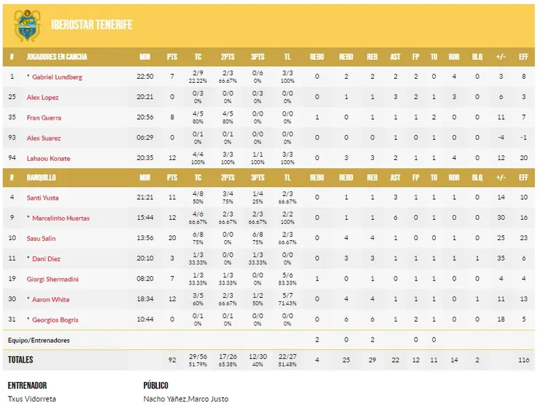 Unas muñecas afinadas: en su mejor momento de la temporada, no hace sino incorporar armas a su arsenal Iberostar Tenerife, cuando se vienen los primeros títulos, las finales, el primer pico de forma de la campaña. Un arma que para sí usara a las mil maravillas en anteriores añadas y que en éste había por momentos abandonado, a la luz de faros georgianos. Pero todo ello ha cambiado. La llegada de nuevas muñecas y la afinación de las que estaban han hecho que Iberostar Tenerife vuelva a tirar de fuera como nunca. Hoy, hasta seis jugadores anotaron desde la larga distancia. Y es que con la sabia de Marcelinho y los centímetros de Gio, vuelven para el Canarias las muñecas más afinadas.