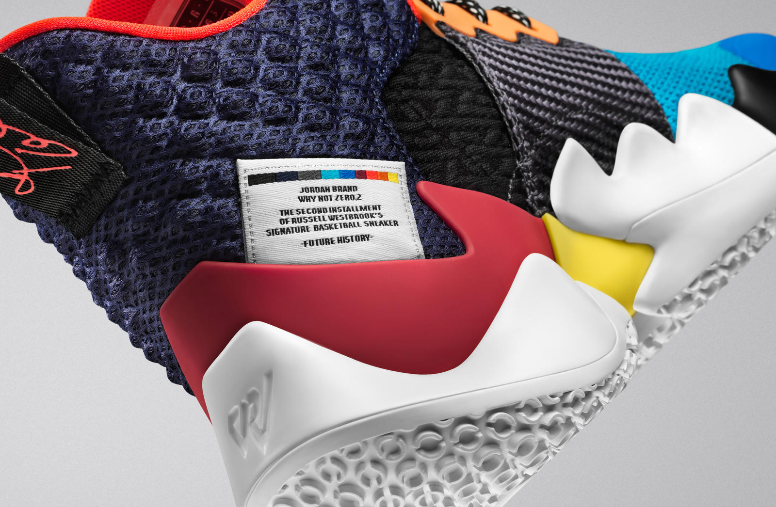 Que Russell Westbrook no es un jugador corriente es un hecho. Y que sus zapatillas deberían tener, al menos, la misma personalidad que él, también. Jordan no ha dejado pasar la oportunidad y el diseño de las Jordan Why Not Zer0.2 ha sido un ejercicio de imaginación que ha dado lugar a una especie de híbrido en el que se mezclan colores y materiales como si no hubiera un mañana. Una etiqueta por allí, otra por allá y un upper que da la impresión —y creo que la intención era esa—, de que han cogido una zapatilla standart y le han dado completamente la vuelta desde el interior, dejando las costuras a la vista.