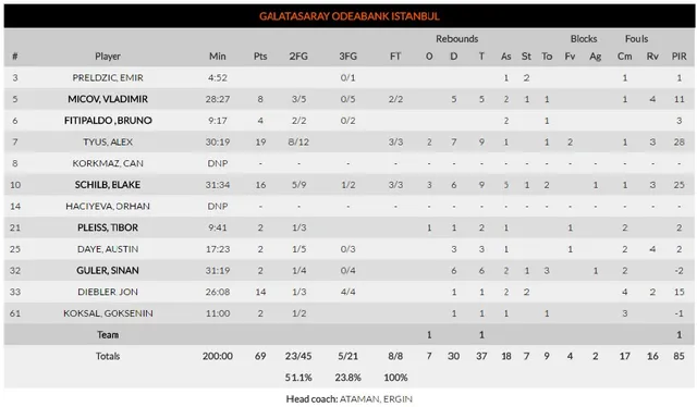 El Galatasaray llegaba a Barcelona sin nada que perder, mientras que el conjunto de Bartzokas se jugaba la vida para poder seguir luchando por un puesto de Playoffs, pero ni eso sería suficiente para motivar a la plantilla blaugrana. La plaga de lesiones seguía en Can Barça, esta noche no jugarían Doellman, Oleson, Renfroe, Ribas y Lawal.