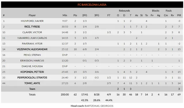 Tras dos minutos sin que ningún equipo rompiese el hielo de la segunda parte, lo haría Vezenkov con un tiro desde más allá del 6,75 (31-26). Al tiro del búlgaro se le uniría Koponen con otro triple desde el mismo sitio. El finlandés estaba de dulce y sumaría otro tiro desde la botella para poner el 36-28 en el marcador. Rice iba a sumar otro tiro de 3 para su equipo, consiguiendo ya poner la ventaja en ocho puntos (41-33). El conjunto de Bartzokas había reaccionado bien, pero habría que ver si serían capaces de mantener el ritmo.