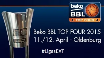 Gran final la vivida en el EWE Arena de Oldenburg entre el equipo local y el actual líder de la BBL, Brose Baskets. El partido fue tan igualado como muestra el marcador final (72-70 / 34-34 al descanso), y le da cierto morbillo que el jugador que anotara la canasta ganadora para Oldenburg sea un ex-bamberg. Oldenburg había alcanzado la final soñada en su pista, y llevados en volandas por las 6000 gargantas que tenían a favor, comenzaron el partido muy enchufados: Dos triples de Chris Kramer y otro de Casper Ware pusieron la primera ventaja en el marcador (9-3). Bamberg consiguió sacudirse el envite inicial del rival apoyando su juego sobre Elias Harris y Strelnieks, consiguiendo imponerse al final del primer cuarto (17-24).