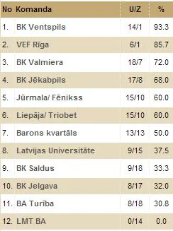 La victoria de BK Ventspils en Riga la pasada jornada dinamitó la cabeza de la tabla y echó por tierra todos los pronósticos que daban por segura la primera plaza a la conclusión de la fase regular a VEF Riga, actual campeón, equipo más rico del país y aún máximo favorito al título. Ahora, y si no ocurre nada raro, el equipo de Timma tendrá la ventaja de campo en todas las rondas finales.