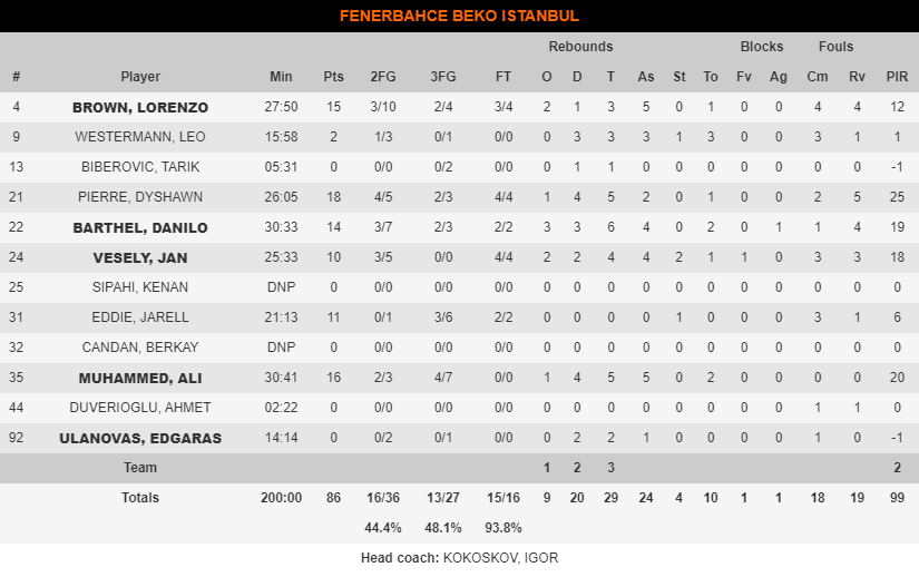 La máxima diferencia del partido de esta noche fueron 10 puntos y los tuvo Fenerbahce, justo el que no se llevó el encuentro. Esto nos da una idea de lo igualado y equilibrado que estuvo el encuentro. Y es que ambos estuvieron igualados en varios aspectos y estaba claro que el partido no tuvo dueño claro, aunque los locales lideraran en casi todo momento. Aunque Fenerbahce fue ligeramente superior en el rebote, Valencia lo era en efectividad en el tiro. Tampoco el triple fue diferencial porque ambos estuvieron entorno al 40-50%. Y fue esa igualdad la que lo hizo interesante de ver, pues no quedó claro quien se llevaría el encuentro y el tiempo dio la razón al ver como los ‘taronja’ se alzaban con la victoria sin casi haber estado por delante.