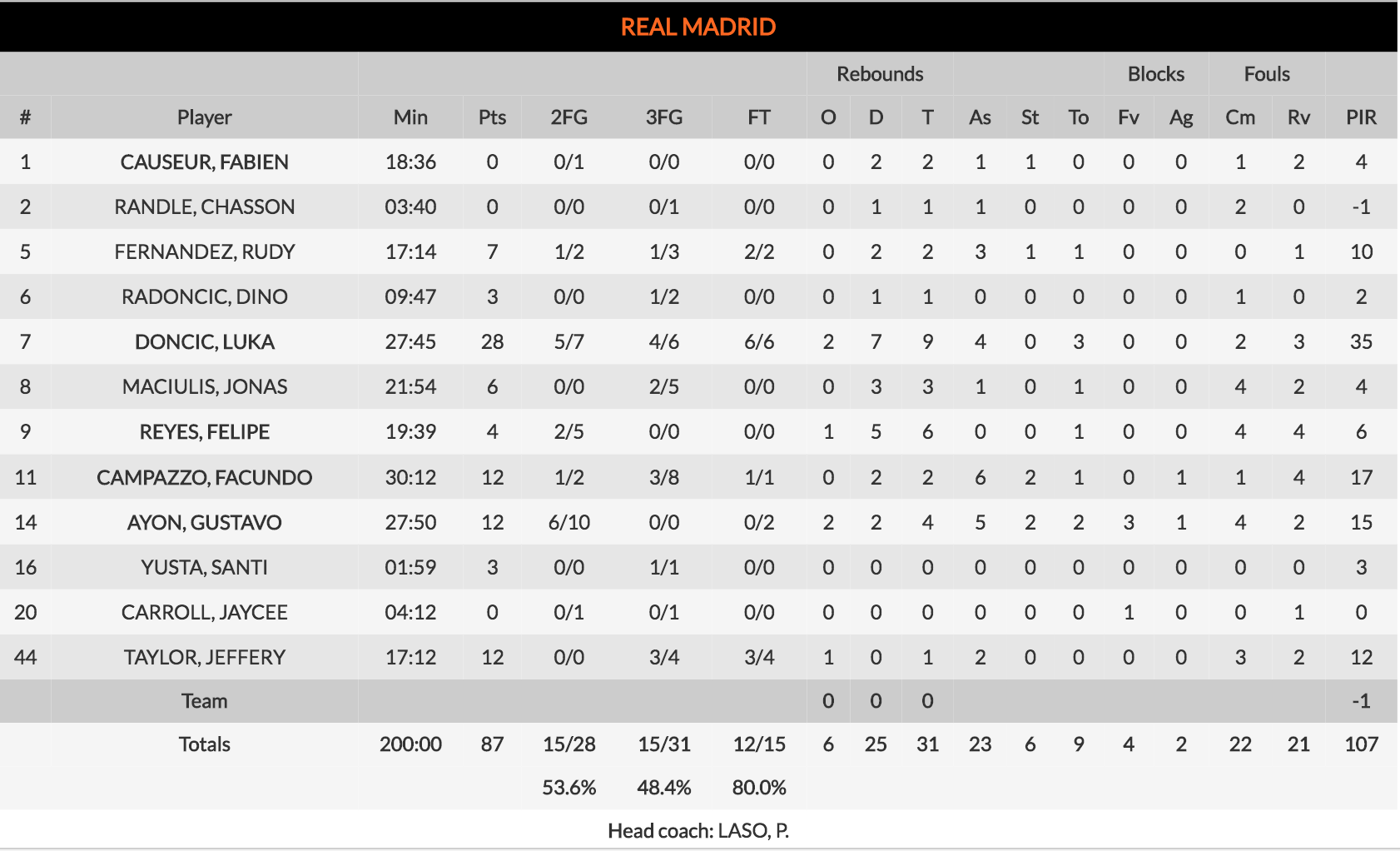 Sin embargo y, como viene siendo costumbre, el paso por los vestuarios sentó bien a los de Laso, que, de la mano de un excelso Luka Doncic (28 puntos, 24 de ellos en la segunda mitad), rompieron el partido, provocando que el último cuarto fuera un trámite para ambos equipos, en el que la ventaja no dejó de ampliarse.