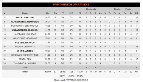 Si pensamos en la plantilla del Panathinaikos hay tres jugadores que destacan sobre el resto: Ioannis Papapetrou, Nemanja Nedovic y Giorgios Papagiannis. Sin embargo, en la tarde de hoy el club griego rompió con el canon habitual y hubo un jugador que estuvo por encima de las expectativas, sorprendiendo a la defensa del Real Madrid. Se trata de Ben Bentil, ala-pívot ghanés que pasó por la ACB de la mano del Bilbao Basket, dónde solamente estuvo media temporada. El interior africano fue un verdadero dolor de muelas para la defensa del Real Madrid, siendo un jugador muy seguro en la pintura. Muestra de su gran papel en el día de hoy son las estadísticas logradas, resumidas en 13 puntos, con 5 de 8 en T2, 5 rebotes y +17 de valoración.